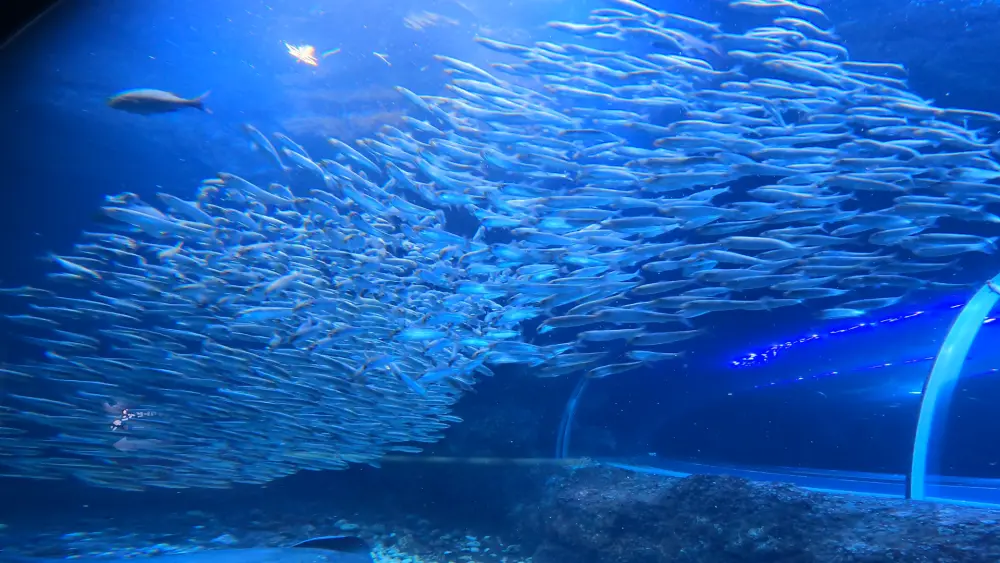 日本海大水槽の底を通るマリントンネルからの眺めは迫力満点!まるで海中にいるかのようです。